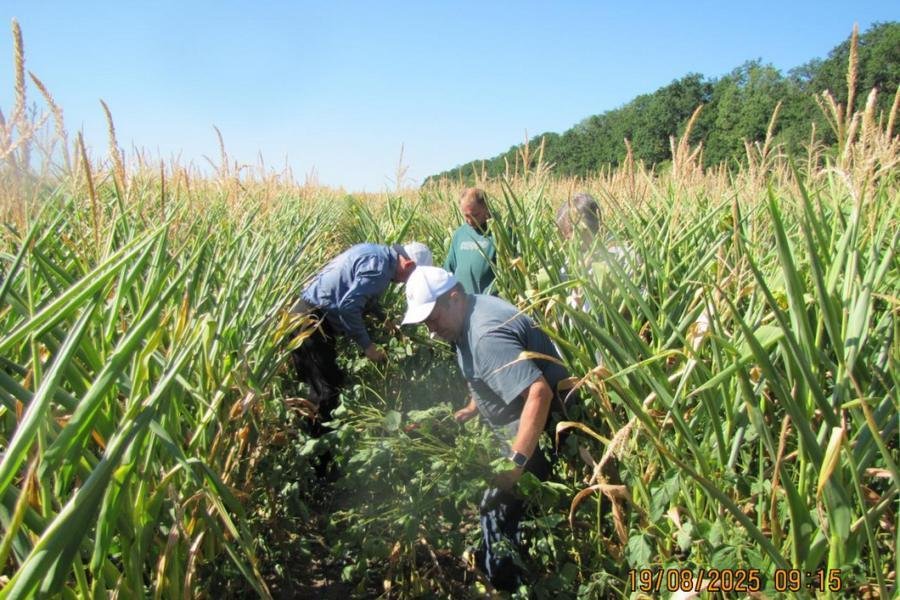 19 серпня в межах виконання договору № 7-23-24 ДП щодо надання наукових послуг «Дослідження технологічного процесу виробництва силосу на основі кукурудзи та сої, вирощених за технологією сумісної сівби кормових культур» відбувся черговий виїзд співробітників кафедри агроінженерії у складі: професор Віктор Мельник, доценти Олександр Анікєєв та Михайло Циганенко, а також в якості співпраці та допомоги - колега з кафедри землеробства та гербології ім. О.М. Можейка доцент Микола Цехмейструк та студент 4 курсу Костянтин Теліга на дослідне поле з метою визначення біологічної врожайності вирощуваних культур.