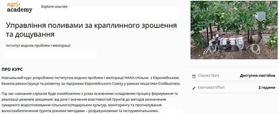 Успішне опанування онлайн курсу «Управління поливами за краплинного зрошення та дощування
