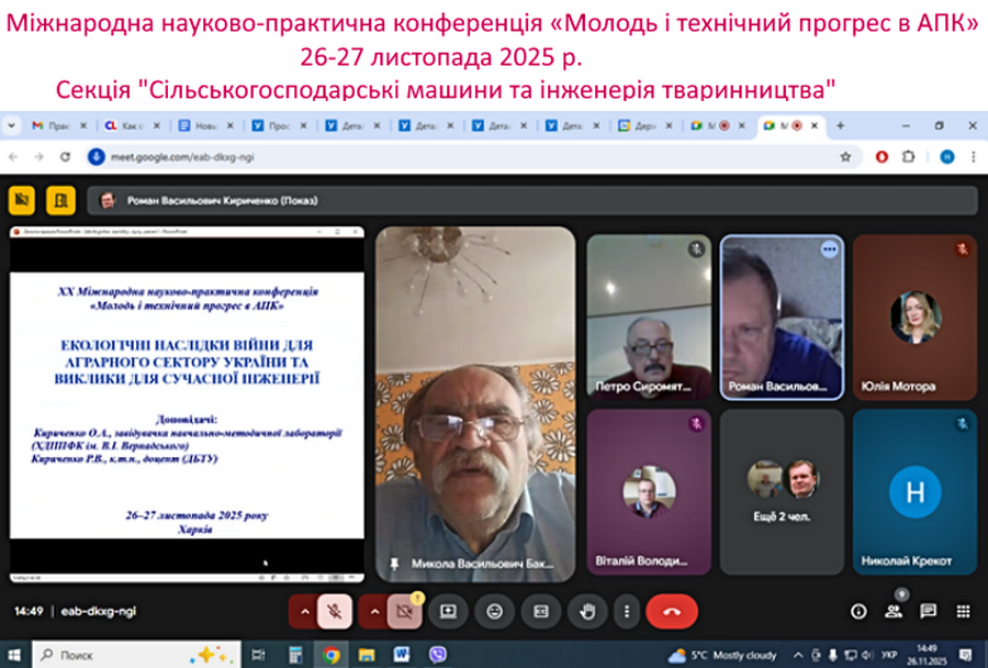 26 листопада 2025 року кафедра агроінженерії стала майданчиком для засідань двох секцій «Експлуатація машинно-тракторного парку» та «Сільськогосподарські машини та інженерія тваринництва» у межах ХХ Міжнародної науково-практичної конференції «Молодь і технічний прогрес в АПК» на факультеті мехатроніки та інжинірингу Державного біотехнологічного університету.